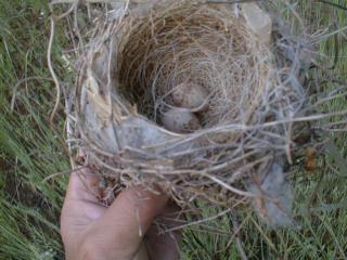 2000年5月22日境川農場のピオーネの樹の上で鳥の巣を見つけました。数日前から巣作りを始めていたようです。可哀想ですが、今のうちに片付けるしかありません。