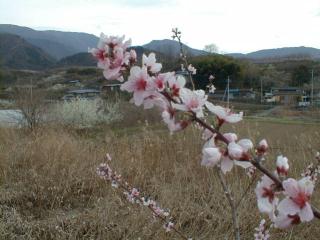 4月3日境川農場の土手に植えてある桃の花が満開になりました。甲府では、月遅れの桃の節句を迎えました。