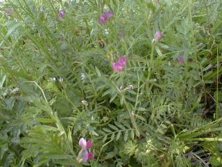 カラスノエンドウの花が咲いていました。てんとう虫が見つけられますか。