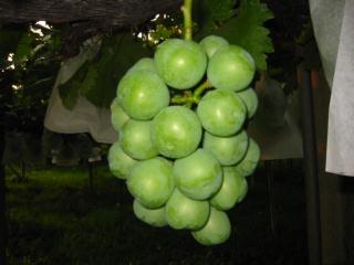 7月1日、摘粒後、袋の中で、果粒肥大。