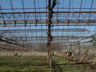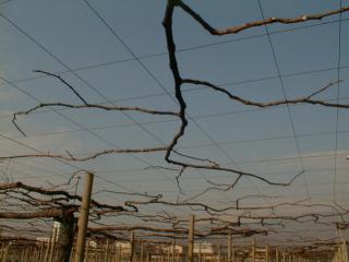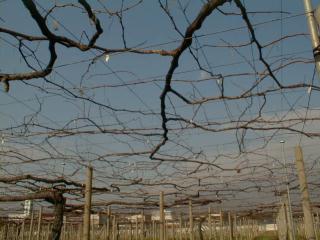 甲府上阿原第一農場で、デラウエアの剪定作業が始まりました。山梨県で主流のX字型自然形長梢剪定という方法です。技術的に難しく、しっかりとした剪定の出来ない人も見うけられます。私は習得するのに5年ほどかかりました。