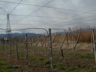 処理後3日間降雨がない日を選ぶのですが、天候が安定せず、予定より一週間遅れてしまいました。4月上旬の遅霜の心配もあるので、ホース栽培(枝にビニールホースを通して促成させる栽培)は、しません。
