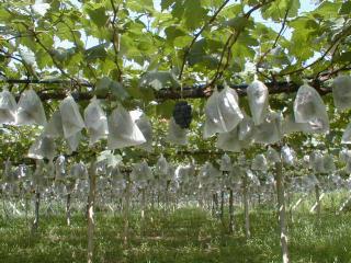 ところで、甲府農場の雹害は、予想以上に大きく、今のところの被害の割合は、デラウエアで、4割減。ベリーAで、8割減。ピオーネは、すでに850Kgを加工用に収穫し最終的には7割減になりそうです。8月上旬からの収穫予定が大幅に遅れてしまい、ご予約を頂いた皆様に大変なご迷惑とご心配をお掛けしたことを心よりお詫び申し上げます。