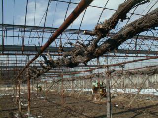 甲府第一農場のベリーAの若木の短梢剪定後のさっぱりとした状態です。昨年の雹の被害が枝に大きなキズとなって残っています。天災は、忘れてなくてもやってくる。今年は、かなり収穫できそうです。