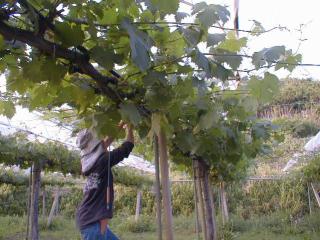 境川農場のロザリオ・ビアンコの見直し摘粒と