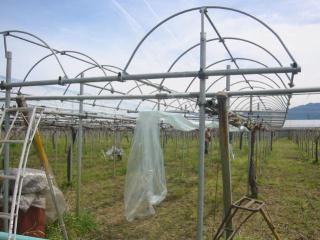 写真は、甲府上阿原第一農場の欧州系品種の雨除け施設の