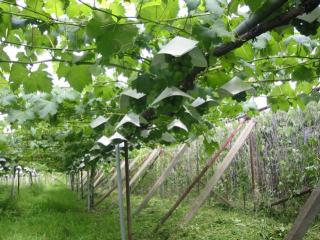 甲府上阿原第二農場の藤稔(ふじみのり)が硬核期になり、摘房をしました。 今年は、雨が多く、徒長的な生育になりやすい状況なので、摘房の回数を増やし、 その時期も、やや遅めにしました。最終的な摘房、収量調節は、着色期の7月下旬を予定しています。